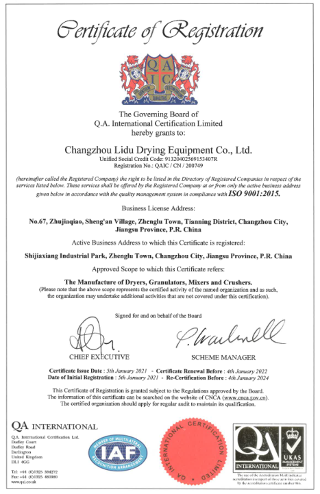 恭祝常州市力度干燥設備有限公司喜獲QA認證!